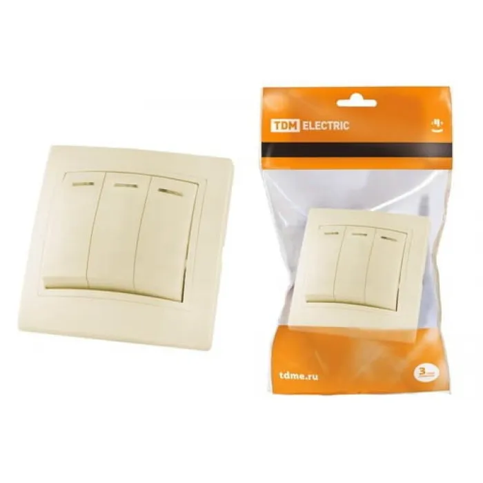 Выключатель 3-клавишный TDM ТАЙМЫР, с подсветкой, скрытый монтаж, слоновая кость, SQ1814-0106, Нижний Новгород