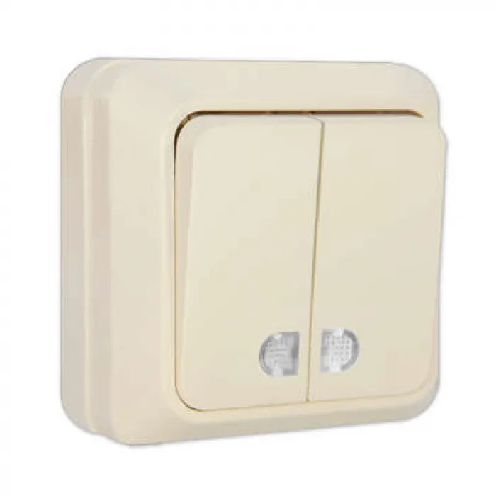 Выключатель UNIVersal Олимп 2-клавишный с подсветкой ОП 10А 220В бежевый Б-О0123, Нижний Новгород