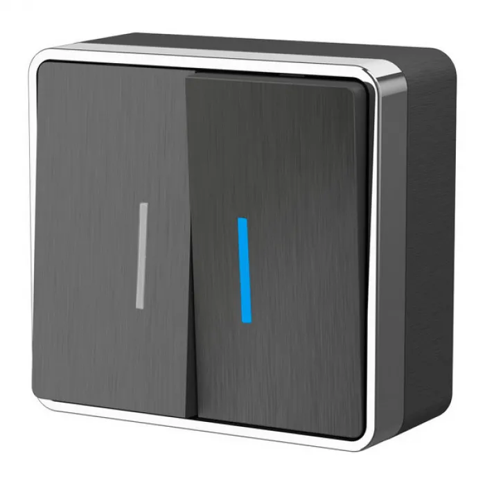 Дизайн выключателя выполнен в стильном графитовом цвете с рифленой поверхностью, что придает ему элегантный и современный вид. Установка этого выключателя проста и быстра, что делает его отличным выбором для обновления интерьера вашего помещения.