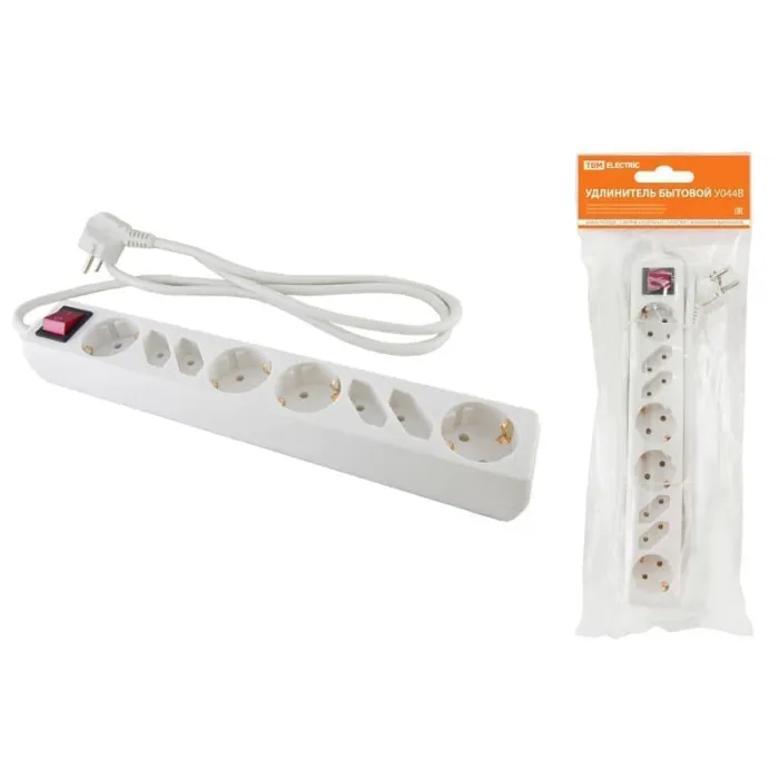 Электротехнический адаптер (ЭА) Удлинитель бытовой TDM У044В предназначен для увеличения доступной длины электрического кабеля в бытовых условиях. Удлинитель оснащен выключателем, 4 розетками с заземлением и 4 розетками без заземления. Длина кабеля составляет 5 метров, что обеспечивает удобство использования в различных помещениях. Кабель выполнен из материала ПВС, имеет сечение 3*1,5 мм и выдерживает нагрузку до 16А при напряжении 250В. Удлинитель обеспечивает безопасное подключение электроприборов и удобство в повседневном использовании.