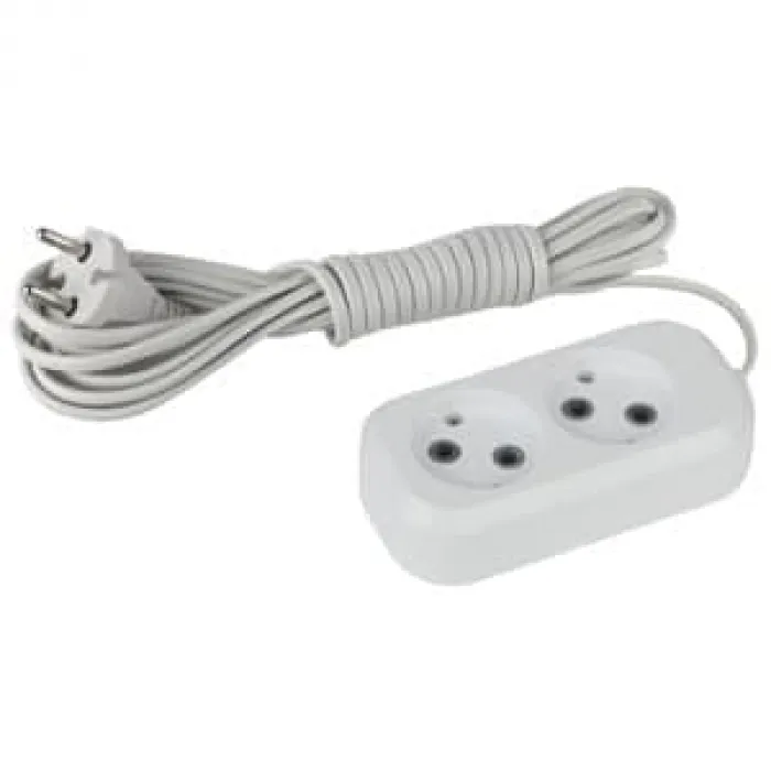 Удлинитель ЭРА серии UX без заземления: провод ШВВП 2x0.75мм2, корпус - ABS-пластик, негорючие вставки из армлена, максимальная нагрузка - 6A/1300Вт