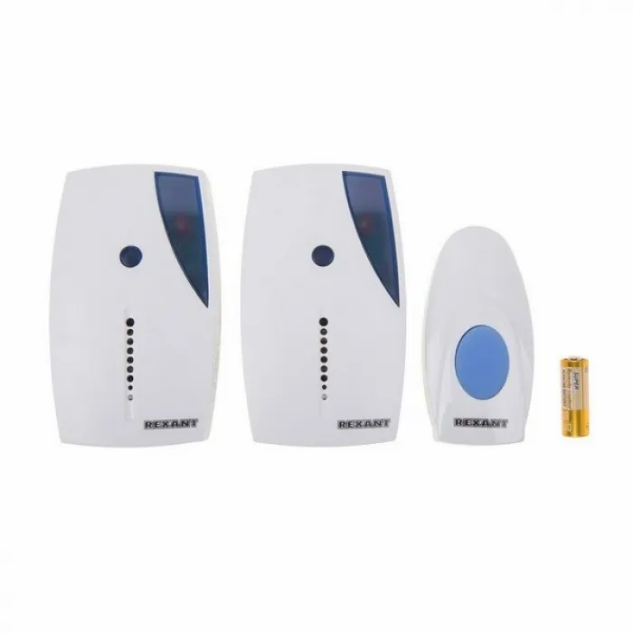 REXANT Звонок беспроводной с двумя вызывными панелями с кнопкой IP44 36 мелодий RX-5 73-0050 - это надежное и удобное решение для организации беспроводной связи между входной дверью и жильцами, обеспечивая безопасность и комфорт в вашем доме.