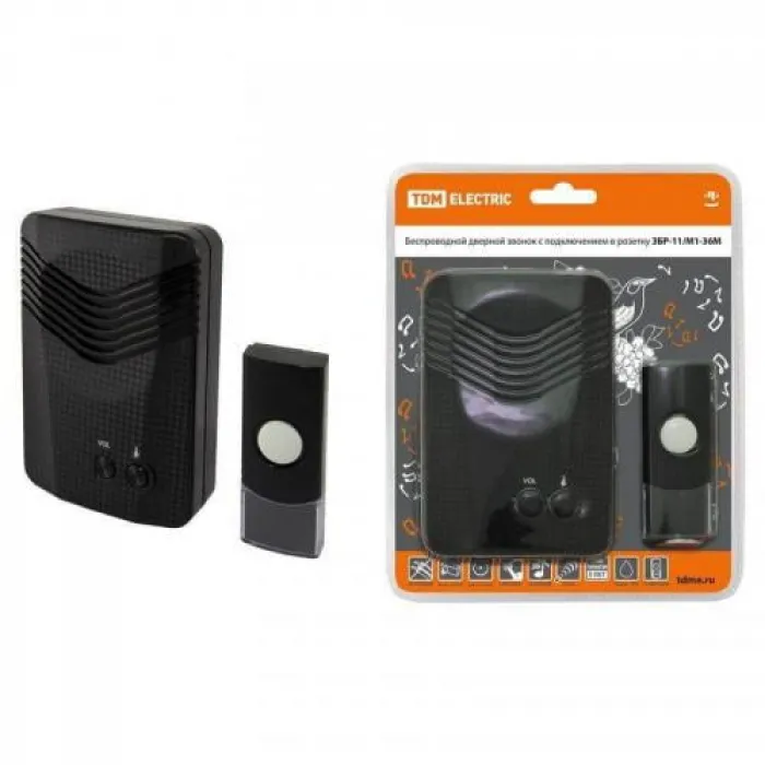 Звонок беспроводной TDM в розетку ЗБР-11/М1-36М (36 мелодий, кнопка IP44, AC 230V, многокодовый), Нижний Новгород