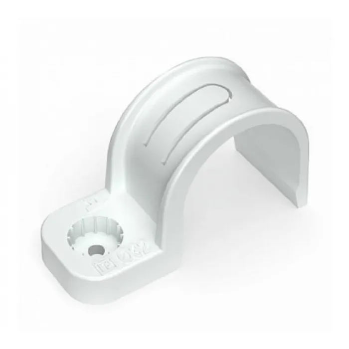 Крепеж-скоба пластиковая односторонняя для прямого монтажа белая в п/э д32 (25/375 уп/кор) Промрукав, Нижний Новгород