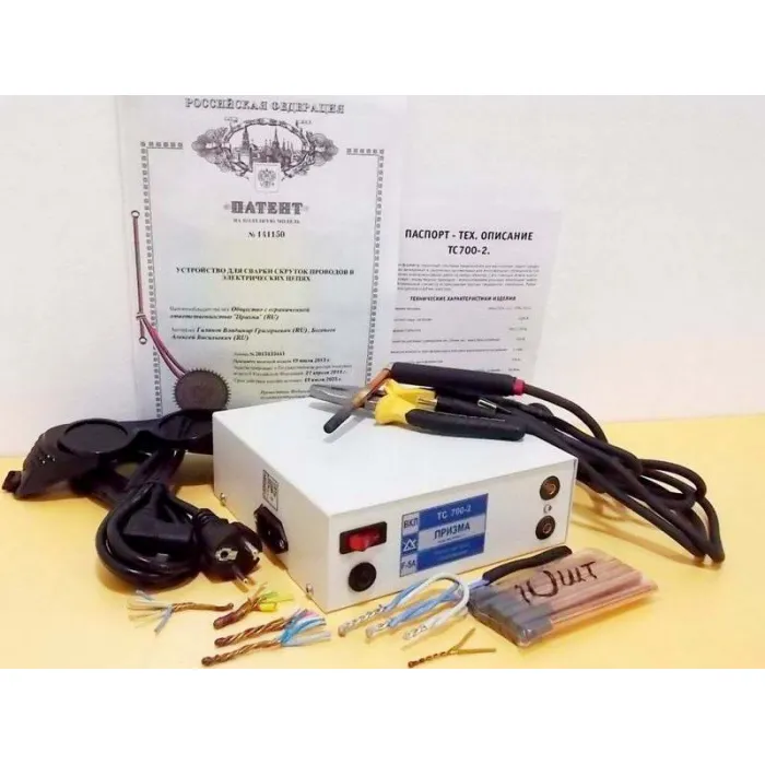 Компактный переносной аппарат для сварки скруток медных и алюминиевых(с использованием флюса) жил, общим сечением не более 24 кв.мм. Такой аппарат в первую очередь необходим для электриков, т.к. обеспечивает наилучшее соединение проводов в распределительных коробах, эл. щитах, эл. шкафах и др. п. (в комплект входит сам аппарат ТС 700-2, защитные очки, сумка для переноски, 10 электродов).
