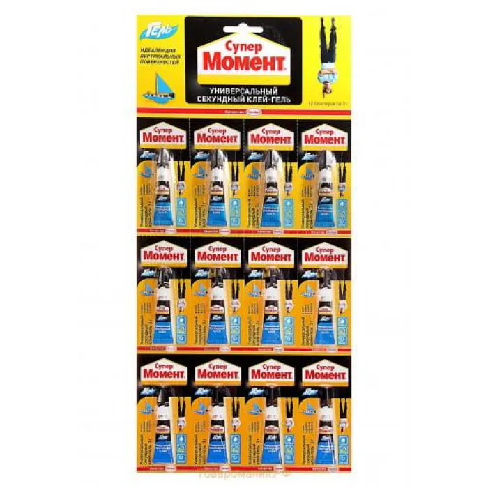 Клей секундный "Супер Момент гель", 3 г (на блистер-карте 12 шт.) (кратно 12), Нижний Новгород