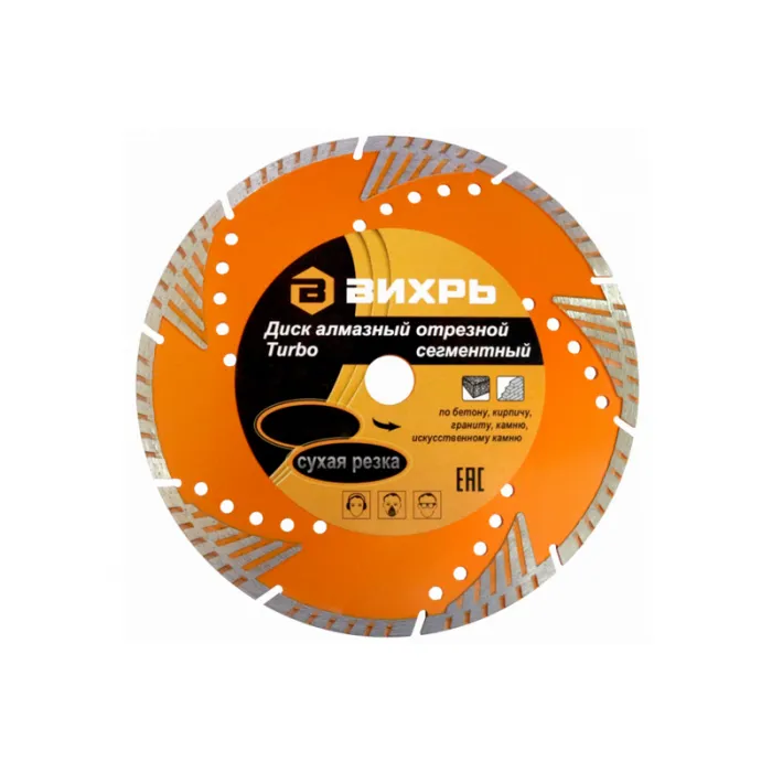 Диск алмазный 125 х 22,2 мм, отрезной, турбо-сегментный, сухая резка 73/10/3/21 - это специальный инструмент, предназначенный для резки материалов с использованием алмазных сегментов. Диск имеет диаметр 125 мм и отверстие под шпиндель диаметром 22,2 мм, что позволяет его использовать с большинством электроинструментов.Данный диск является отрезным, что значит, что он предназначен для выполнения прямых разрезов в материалах. Он обладает турбо-сегментным дизайном, что обеспечивает быструю и эффективную резку.