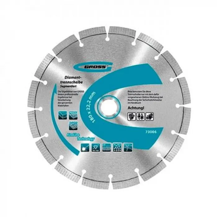 Диск алмазный 230 х 22,2 мм, сегмент. сухая резка // GROSS Германия 73008 идеально подходит для профессионального использования при строительных и ремонтных работах. Он позволяет быстро и точно резать такие материалы, как камень, бетон, керамика и другие твердые материалы.