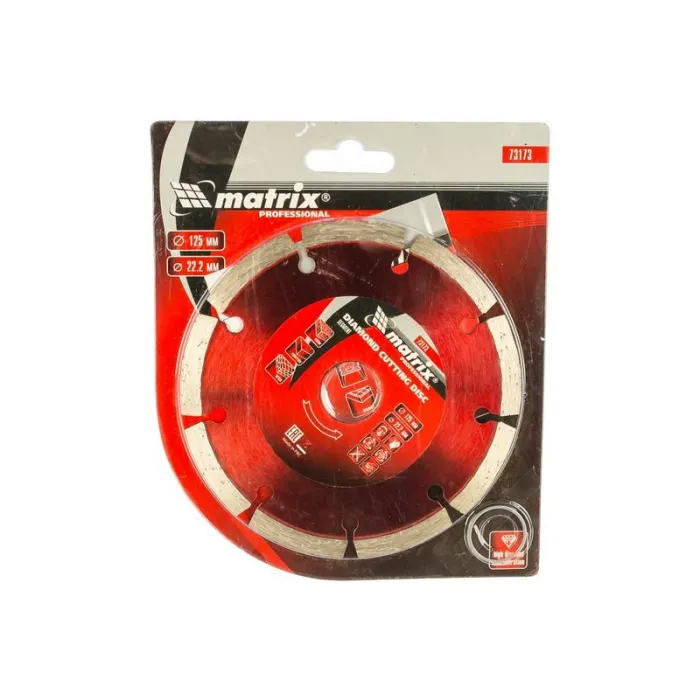 Диск алмазный отрезной сегментный, 125 х 22,2 мм, сухая резка// MATRIX Professional - это надежный и эффективный инструмент для профессиональных строителей, ремонтников и всех, кто нуждается в качественной резке материалов.