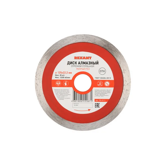 Диск алмазный отрезной сплошной 125х22.2мм Rexant 90-0111, Нижний Новгород
