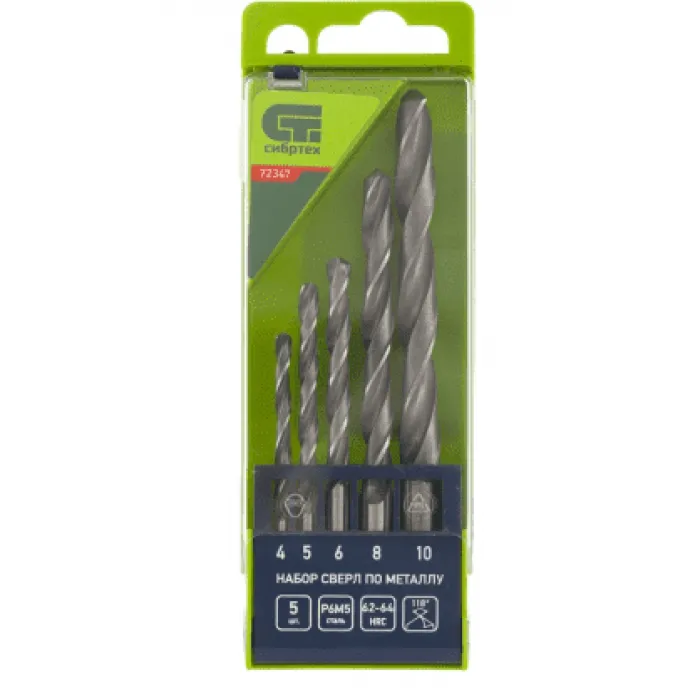 Набор сверл по металлу 4-10 мм, 5 штук., Р6М5, пластиковый кейс // СИБРТЕХ, Нижний Новгород