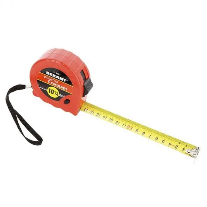 Рулетка Стандарт 10м*25мм Rexant - это удобный инструмент для измерения расстояний и размеров. Имеет длину измерительной ленты 10 метров и ширину ленты 25 мм. Рулетка выполнена из прочного материала, что обеспечивает ее долгий срок службы. Удобная рукоятка позволяет удобно держать рулетку в руке и легко измерять нужные значения. Идеально подходит для использования как в домашних условиях, так и на строительных объектах.