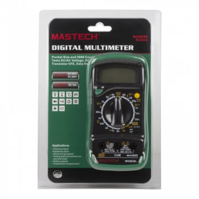 Портативный мультиметр MAS830L MASTECH - это надежный и компактный прибор для измерения различных параметров электрических цепей. Он обладает широким диапазоном измерений, что позволяет использовать его как для профессиональных целей, так и для бытовых нужд. Мультиметр MAS830L MASTECH оснащен удобным ЖК-дисплеем, который отображает измеряемые значения с высокой точностью. Благодаря своей портативности и простоте использования, этот мультиметр станет незаменимым инструментом как для профессиональных электриков, так и для любителей электроники.