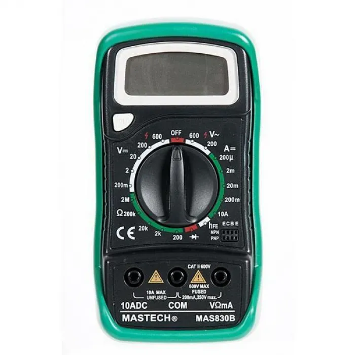 Портативный мультиметр цифровой Mastech MAS830B - надежный и удобный в использовании прибор для измерения различных параметров электрических цепей. Благодаря своей компактности и легкости, он идеально подходит как для профессиональных электротехников, так и для любителей. Мультиметр оснащен большим ЖК-дисплеем, который обеспечивает отличную видимость измеряемых значений. Mastech MAS830B позволяет измерять напряжение, ток, сопротивление, ёмкость, частоту, а также проводить проверку диодов и транзисторов. Благодаря своей функциональности и надежности, этот мультиметр станет незаменимым помощником при проведении электрических работ.