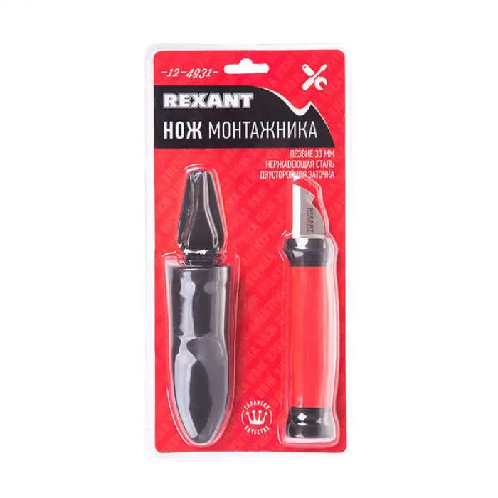 Нож монтажника Rexant 12-4931 представляет собой удобный инструмент для работы с кабелями и проводами. Изготовлен из нержавеющей стали, что обеспечивает долгий срок службы и надежность. Нож оснащен двухсторонней заточкой лезвия длиной 33 мм, что обеспечивает точный и чистый рез. Удобная рукоятка делает работу с ножом комфортной и безопасной. Нож монтажника Rexant 12-4931 идеально подходит для использования в электромонтажных работах, ремонте электропроводки и других задачах, где требуется точный и качественный разрез материала.