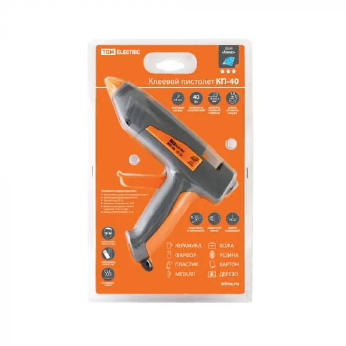 Клеевой пистолет КП-40 , 11,3 мм, с подставкой, шнур 1,3 м, 40 Вт, Т=220 С "Алмаз" TDM, Нижний Новгород