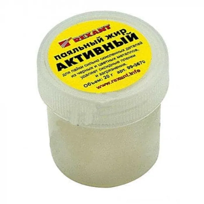 Паяльный жир АКТИВНЫЙ 20гр REXANT предназначен для удаления оксидов с поверхности под пайку, улучшения растекания жидкого припоя при пайке радио и электротехнических устройств. Главным образом, жир хорошо держится на различных металлических контактах, тем самым в отличие от жидкого флюса, есть возможность точного дозирования, и высокой скорости нанесения на большое количество мест паек. Данный флюс применяется при пайке сильно окисленных деталей черных и цветных металлов или поверхностей припоям