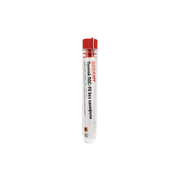 Припой без канифоли ПОС-90 10г d1.0мм (Sn90 Pb10) колба Rexant 09-3094 - надежный помощник для профессиональных электронщиков и любителей, которые стремятся к качественной и надежной пайке электронных компонентов. Объем колбы составляет 10 грамм, что обеспечивает достаточное количество припоя для множества рабочих операций. Закажите припой без канифоли ПОС-90 10г d1.0мм (Sn90 Pb10) колба Rexant 09-3094 прямо сейчас и уверенно приступайте к своим проектам!