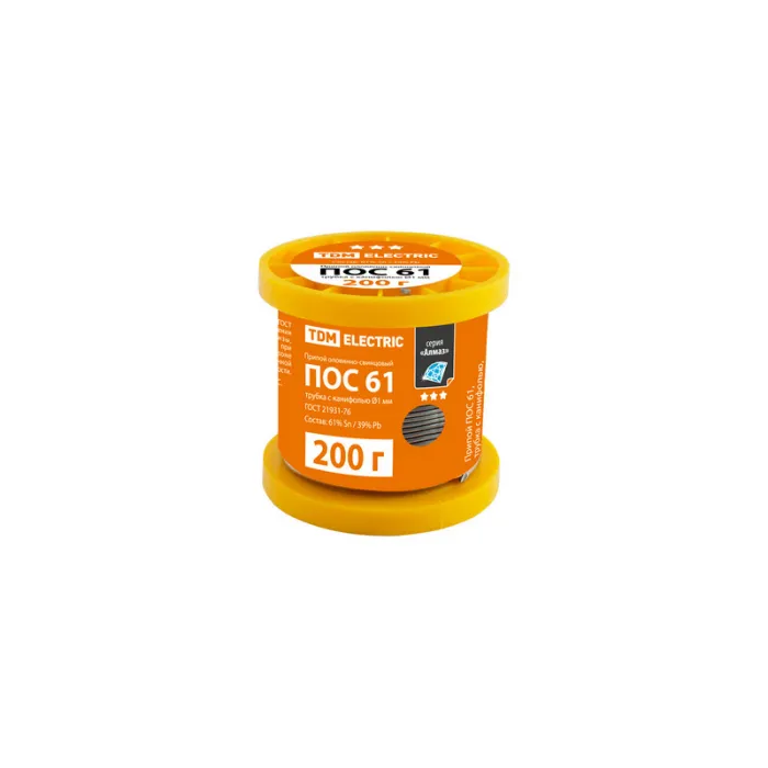 Припой ПОС 61, трубка с канифолью, ГОСТ 21931-76, Ø1 мм, 200 г, катушка, серия "Алмаз" TDM, Нижний Новгород