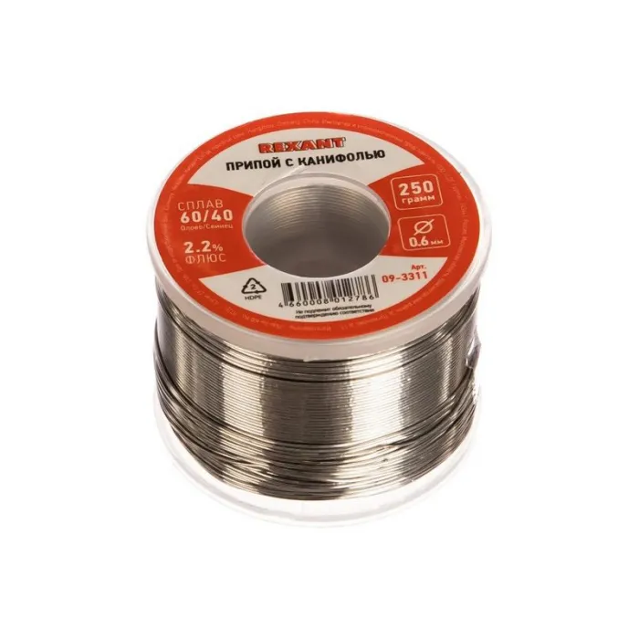 Припой с канифолью 250 гр. d=0.6 мм (Sn60 Pb40 Flux 2.2%) REXANT арт.09-3311, Нижний Новгород
