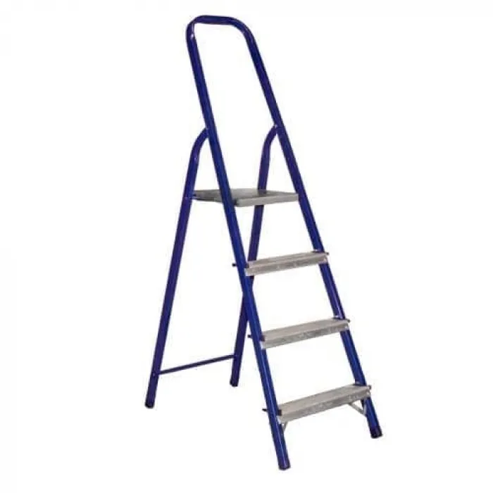 Стремянка имеет общую высоту 1,53 м, рабочую высоту 2.82 м, 4 ступени и весит 5,1 кг. Верхняя широкая ступенька или площадка, расположена на высоте 0,82 м. Стремянка из легированной стали, сверху покрыта синей, полимерной, эмалевой краской.Она очень прочная, обеспечивает хорошую устойчивость как всей конструкции, так и каждой ступеньки по отдельности: алюминиевые ступени для защиты от скольжения покрыты рифлением. Стремянка очень удобна при проведении строительных работ на относительно небольшо