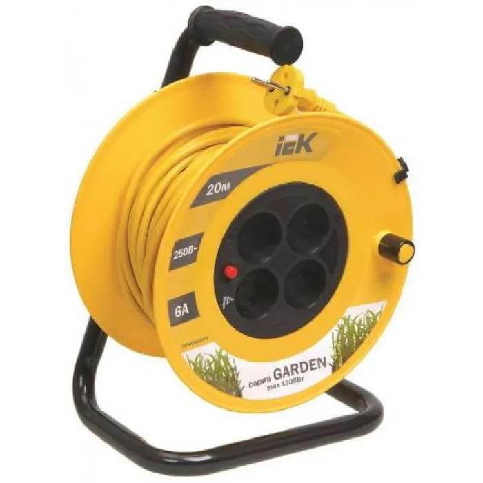 Удлинитель на катушке IEK 4х20м УК20 с термозащитой 2х0.75 Garden WKP23-06-04-20 277731 - это приспособление для удаленной работы с электрооборудованием. Провод ПВС 2х0,75 расположен на пластиковой катушке с ручкой для его скручивания. На лицевой панели расположено 4 гнезда. Термозащита оберегает устройство от перегрузок напряжени