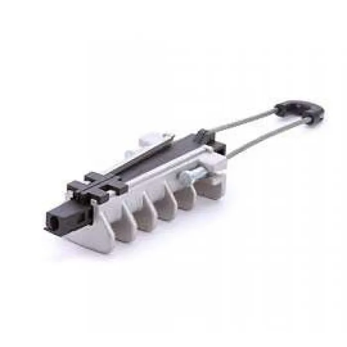 Анкерный зажим КВТ ЗАН-1500 PA 1500 58127 используется для крепления СИП совместно с изолированной несущей нейтралью к крюкам и кронштейнам опор линий электропередач. Саморегулируемые клинья обеспечивают надежный зажим провода нейтрали без повреждения его оболочки. Гибкий тросик с изолированным седлом позволяет устанавливать на кронштейне до трех зажимов.