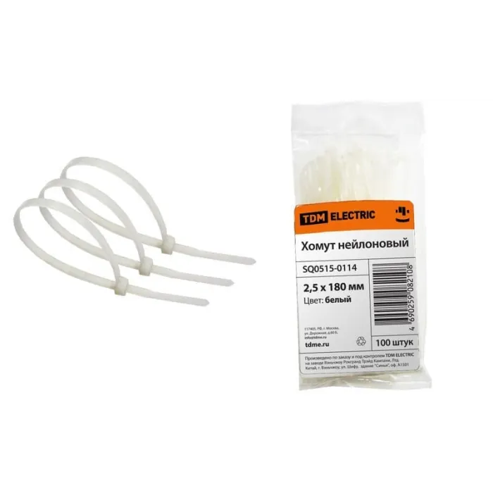 В нашем магазине Главэлектрика в Нижнем Новгороде, вы можете приобрести с доставкой по Нижнему Новгороду товар Хомут (стяжка) нейлон 2.5 х 180 бел. (100шт) TDM SQ0515-0114.