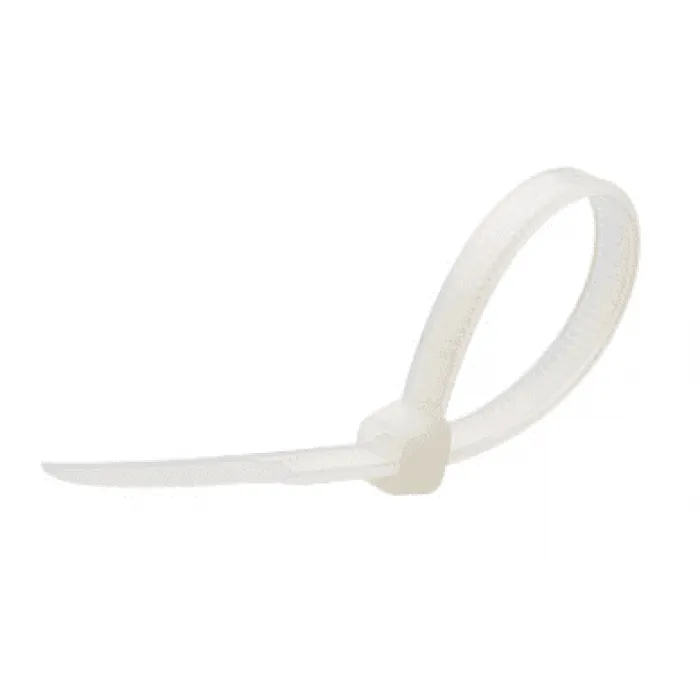Этот товар поставляется в упаковке по 100 штук, что является удобным решением для больших объемов работ или постоянных потребностей. Каждый хомут имеет отверстие для надежной фиксации, а также заостренный конец для легкой установки и быстрого закрепления.