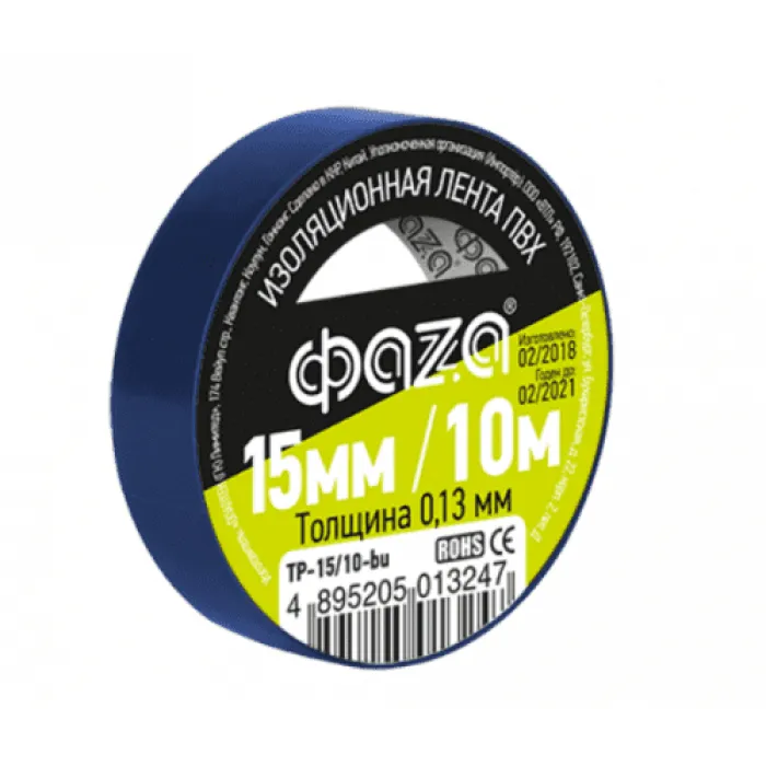 В нашем магазине Главэлектрика в Нижнем Новгороде, вы можете приобрести с доставкой по Нижнему Новгороду товар Изолента ПВХ синяя 15мм 10м ФАZА.