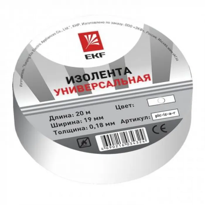 Изолента ПВХ белая 15мм 20м EKF - это качественная изолента, предназначенная для электроизоляции и крепления проводов и кабелей. Ширина ленты составляет 15мм, а длина - 20м. Белый цвет делает изоленту универсальной и подходящей для широкого спектра задач. Продукт отличается высокой прочностью, устойчивостью к воздействию влаги и химических веществ, а также легкостью использования. Изолента ПВХ белая 15мм 20м EKF идеально подходит для использования в домашних условиях, на производстве и в автомобильной отрасли.Изолента ПВХ белая 15мм 20м EKF – надежный и прочный материал для упаковки, изоляции и ремонта. Выполнена из качественного поливинилхлорида, обладает высокой эластичностью, что позволяет ей легко прилегать к различным поверхностям. Данная изолента имеет ширину 15 мм и длину 20 м, что обеспечивает достаточный запас материала для проведения различных работ.