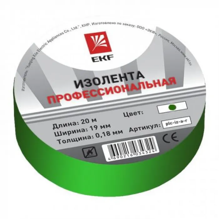 Изолента EKF изготавливается из высококачественного негорючего ПВХ. Представляет собой расходный материал для проведения бытовых и строительных электромонтажных работ. Используется для электроизоляции, в целях маркировки, а также для защиты от механических повреждений, воздействия влаги и др. Устойчива к воздействию УФ-лучей, влажности, истиранию, коррозии металлов, старению. Клеевой слой на резиновой основе. Изолента выпускается в рулонах по 20м двух типов: профессиональная (класс А) и общего применения (класс В). Семь вариантов цвета: белый, красный, синий, желтый, зеленый,черный, желто-зеленый.