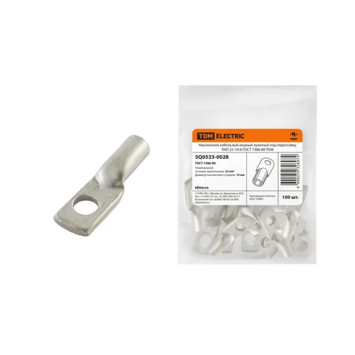 В нашем магазине Главэлектрика в Нижнем Новгороде, вы можете приобрести с доставкой по Нижнему Новгороду товар Наконечник ТМЛ 25-10-8 луженый TDM.