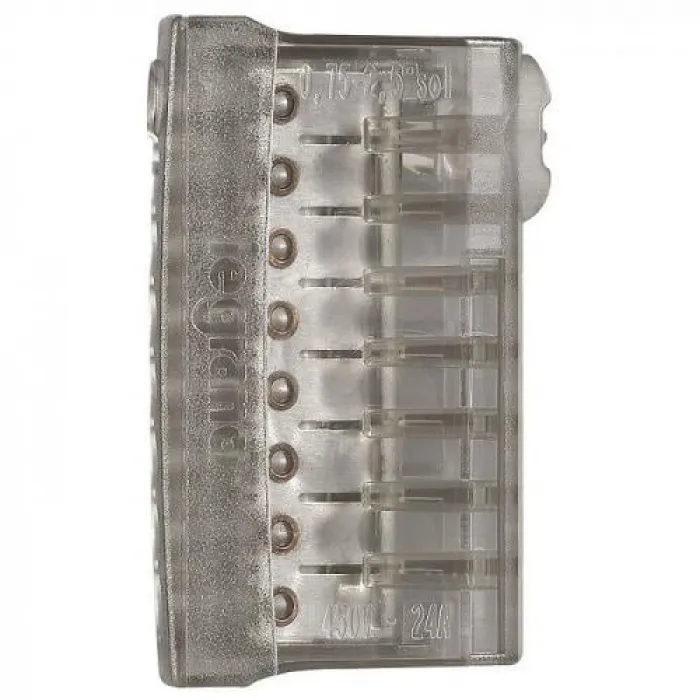 Пружинный клеммник Nylbloc auto для 8 клемм - 24A - 450 В~ - серый Legrand 034328 - это надежное и удобное решение для подключения проводов в электрических цепях. Клеммник оснащен пружинным механизмом, который обеспечивает надежное и быстрое соединение проводов без необходимости использования отвертки.Этот клеммник поддерживает ток до 24А и напряжение до 450 В переменного тока, что делает его идеальным для использования в различных электрических системах.