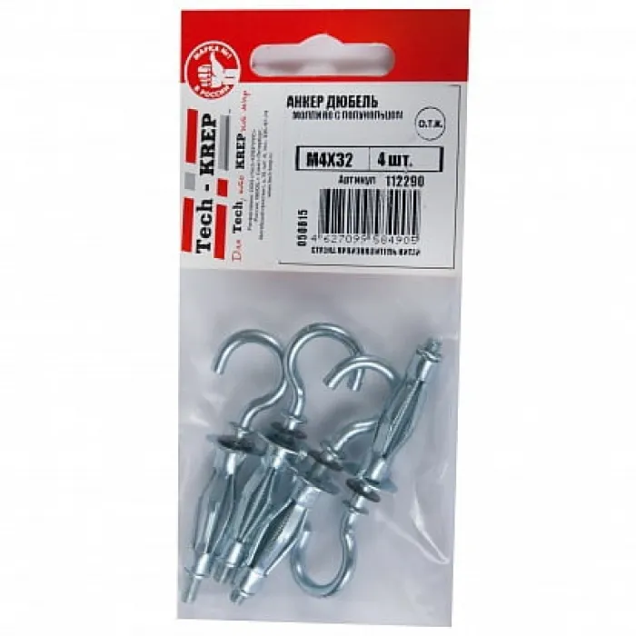 Дюбель (анкер) Молли RO (с полукольцом) М4х32 (4 шт) - пакет Tech-Krep, Нижний Новгород