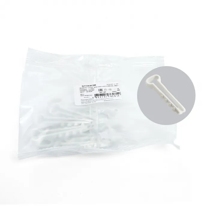 Дюбель-хомут для плоского кабеля (5-10мм), полипропилен, белый (DIY упаковка 10шт.), DCL01-5-10, Нижний Новгород