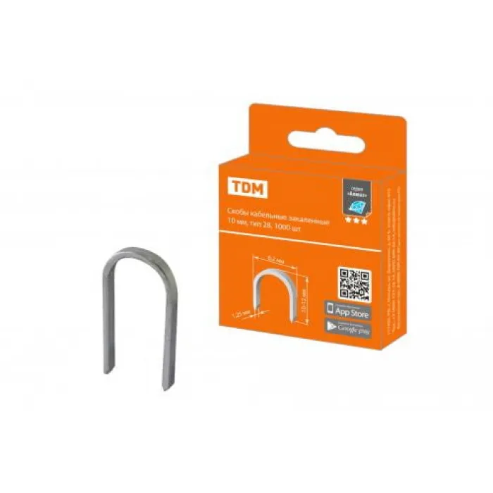 Скоба кабельная закаленная 10мм тип 28, 1000шт "Алмаз" TDM, Нижний Новгород