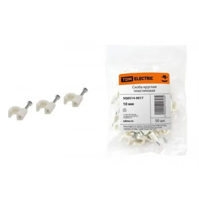 Скоба крепежная d10 (50шт в уп-ке) круглая пластиковая TDM, Нижний Новгород