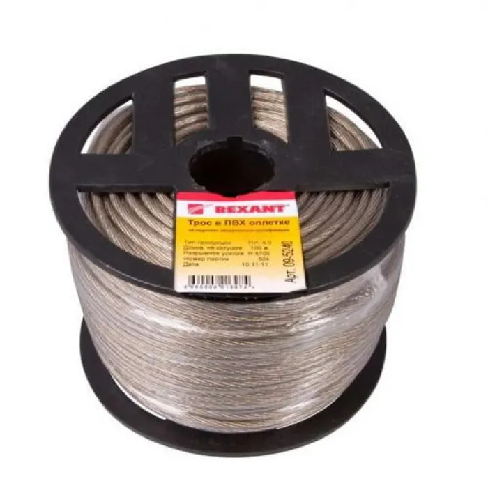 Трос стальной в ПВХ изоляции d=4,0 мм, 100 м REXANT (09-5240), Нижний Новгород