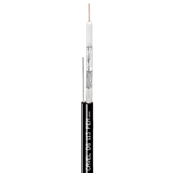 Кабель коаксиальный Cavel DG 113 PEM уличный с тросом CU 75 Ом [бухты 100м, 500м]Кабель коаксиальный Cavel DG 113 PEM - это высококачественный уличный кабель, специально разработанный для передачи сигналов в условиях эксплуатации на открытом воздухе. Сочетание прочной изоляции и высокой степени защиты обеспечивает надежную работу кабеля даже в самых неблагоприятных климатических условиях.