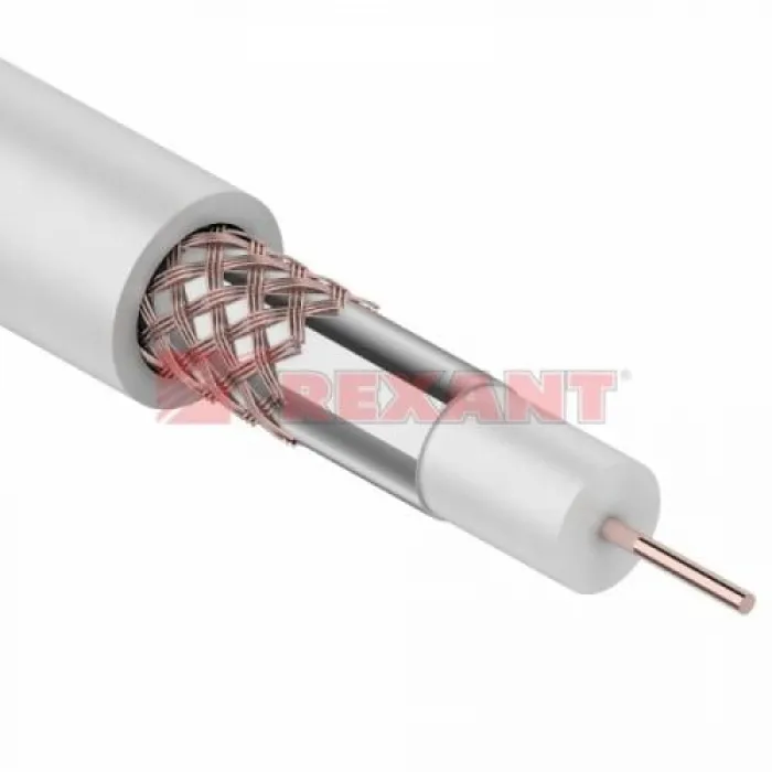 Кабель RG-59U+Cu (75 Ом), Cu/Al/Cu 64 % (бухта 100 м) белый REXANT, Нижний Новгород