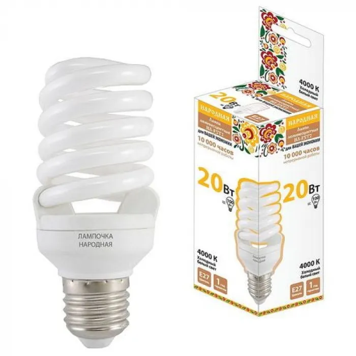 Лампа энергосберегающая TDM НЛ-FSТ2-20 Вт-4000К–Е27, SQ0347-0011, Нижний Новгород