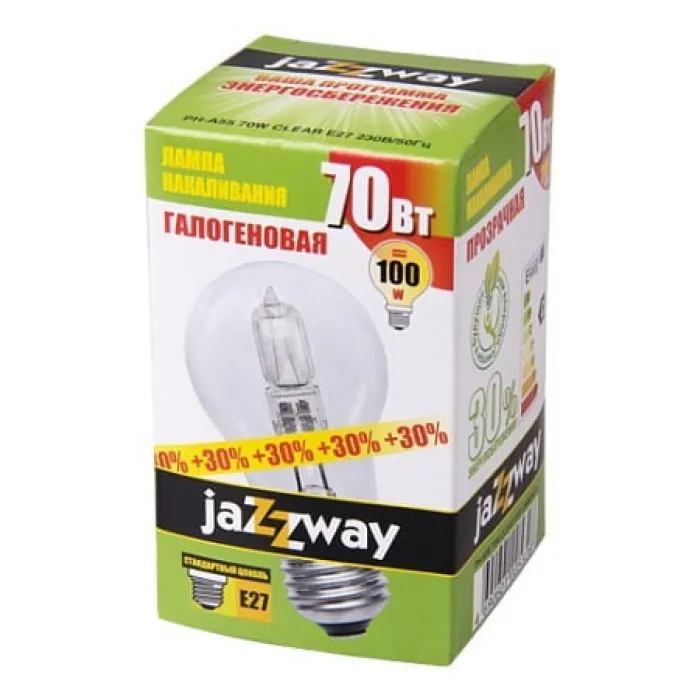 Лампа галогенная Jazzway PH - A55 70Вт E27 230/50Гц clear, 1005328 - идеальное решение для обеспечения яркого и эффективного освещения в вашем доме или офисе. Эта лампа сочетает в себе высокую яркость света с низким энергопотреблением, что делает ее экономичным и энергоэффективным выбором.