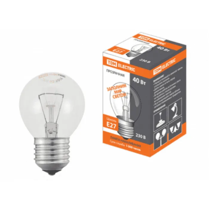 Лампа накаливания TDM шарик Р45 40Вт Е27, SQ0332-0002, Нижний Новгород