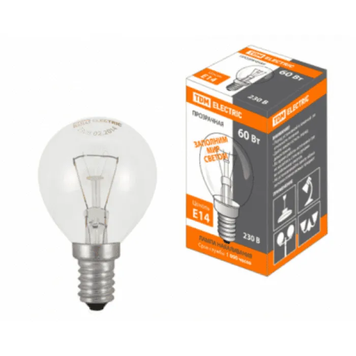 Лампа накаливания TDM шарик Р45 60Вт Е14, SQ0332-0003, Нижний Новгород