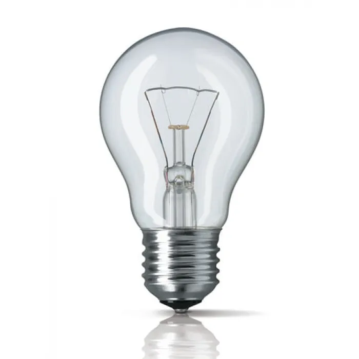 Стандартные лампы накаливания с колбой грушевидной формы. Лампы с прозрачной колбой идеально подходят для непрямого освещения в закрытых светильниках и в тех случаях, когда яркие искрящиеся световые эффекты важнее, чем отсутствие бликов.Колба - А55