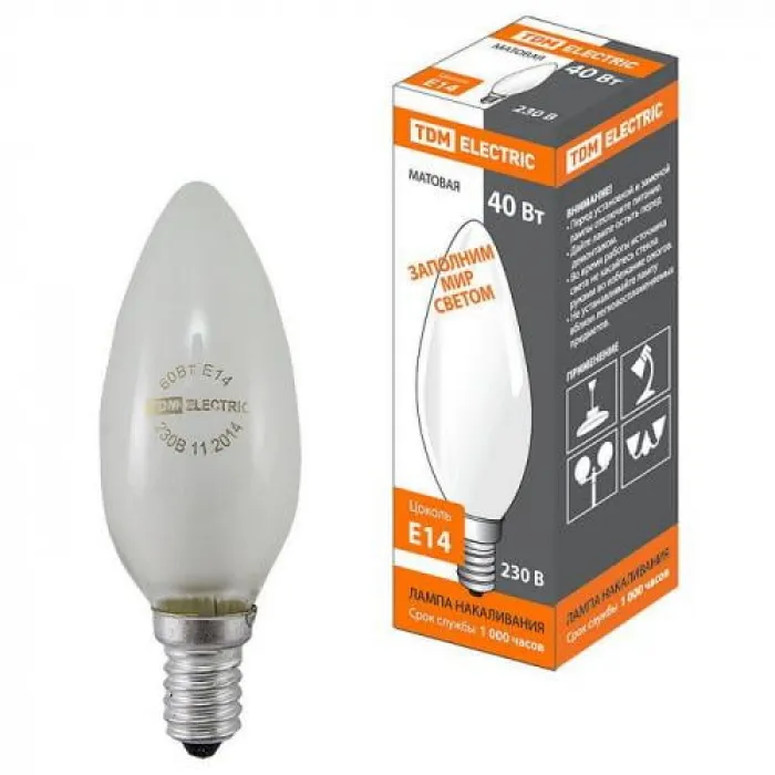 Лампа накаливания свеча TDM 40Вт 230В Е14, SQ0332-0017, Нижний Новгород