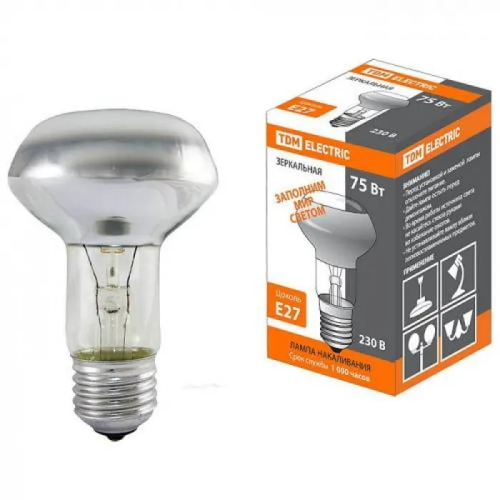 Лампа накаливания зеркальная TDM R63-75 Вт-230 В-Е27, SQ0332-0031, Нижний Новгород