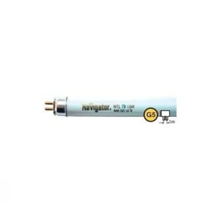 Navigator NTL-T5 – люминесцентная лампа. Колба лампы – трубка диаметром 16 мм покрыта трехполосным люминофором, который обеспечивает индекс цветопередачи лампы Ra > 82.Мощность 6 Вт