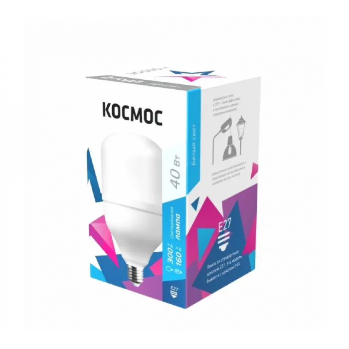 Лампа светодиодная Космос 40Вт 220В Е27 D100х189 4500К 3650 лм, LksmHWLED40WE2745, Нижний Новгород